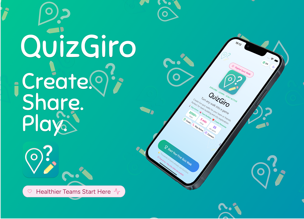 QuizGiro är den enda appen som kombinerar AI-genererade frågor, GPS-baserad navigation och hälsofokuserade aktiviteter för den ultimata teambuilding-upplevelsen.